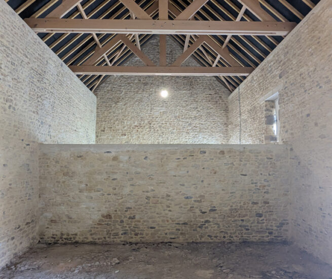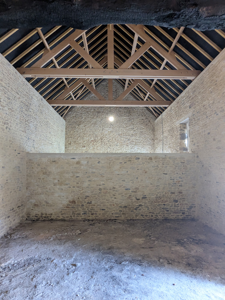 LA REMISE EN ÉTAT de cette bâtisse exceptionnelle, mise à mal par un incendie, est maintenant terminée ! Ce projet insuffle une seconde vie à cette grange. Ça nous donne envie de l’aménager en habitation, pas vous ? #findechantier#architecture#architecte#Bayeux#normandie